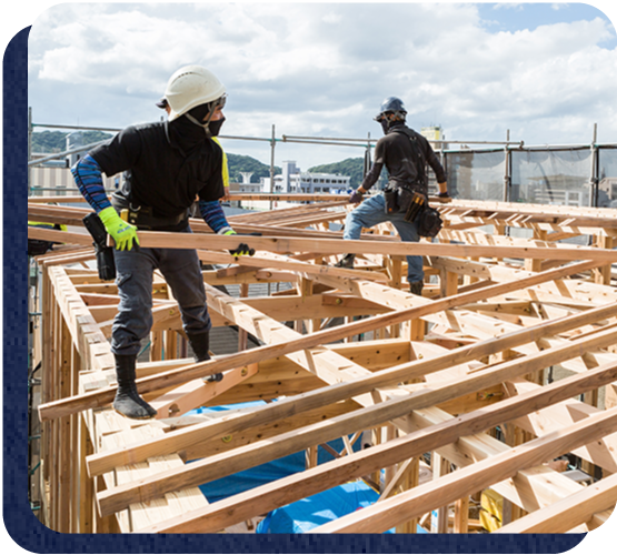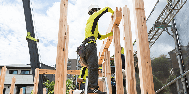 木造住宅において、柱や梁、棟木を組み立てながら、建物のカタチを建設する工事です。